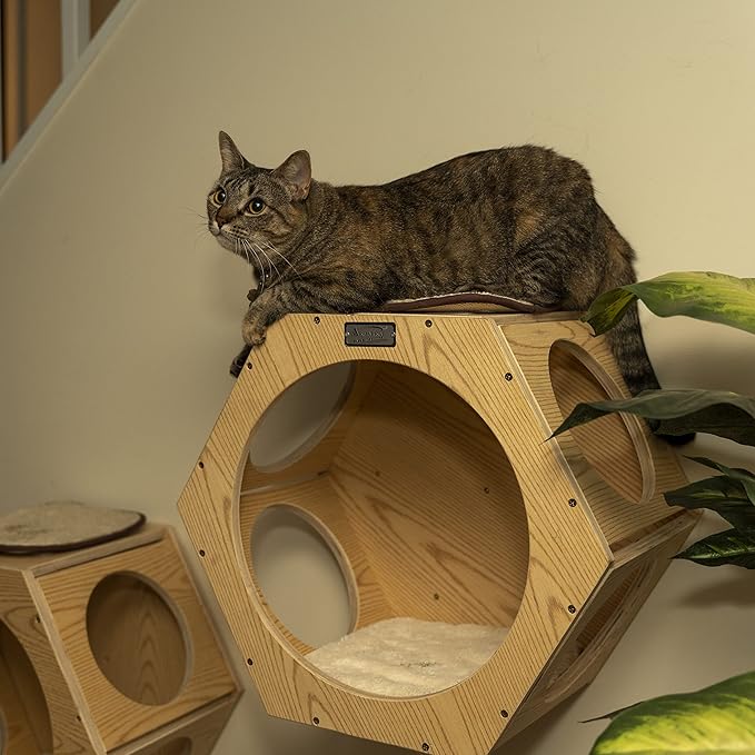- Wall-mounted cat shelf that allow cat to climb, jump and rest on it. Felines can sleep and observe from the height place indoor