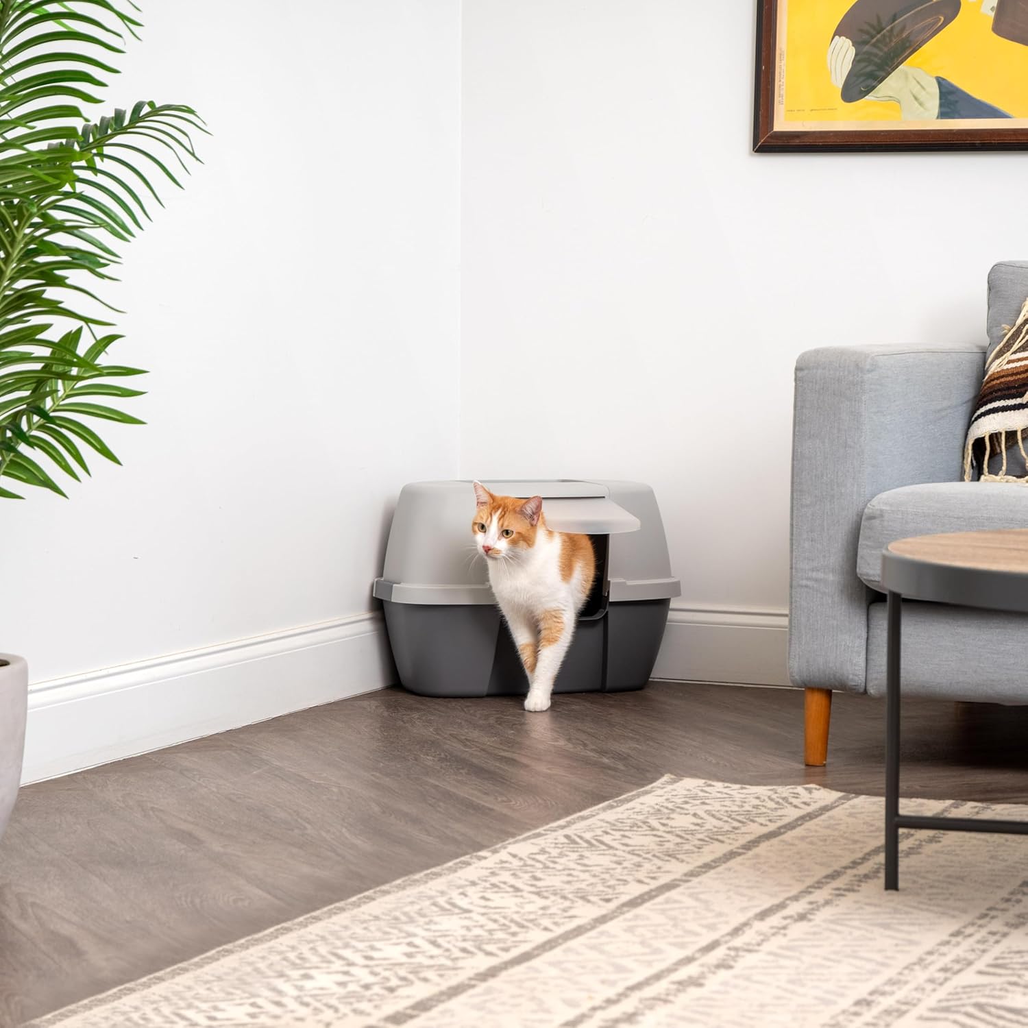 - RETRACTABLE HOOD: The enclosed litter box features a retractable hood that makes cleaning convenient and hassle-free, while also giving your pet some privacy within their own space.