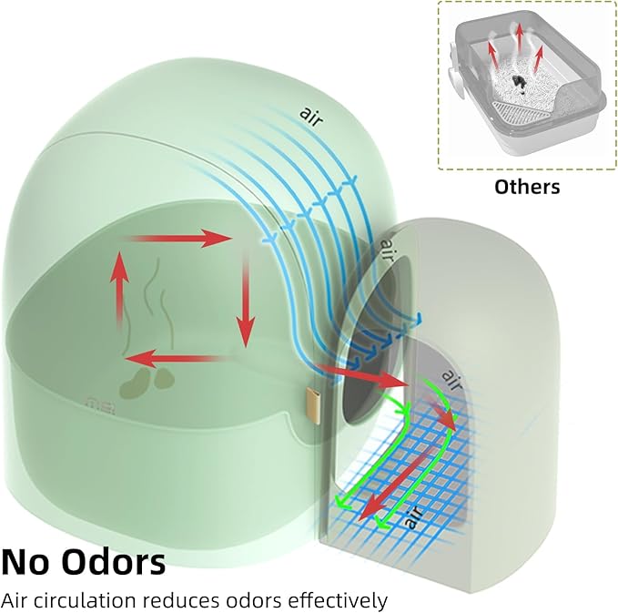 • Closed Design: Closed cat litter box with lid design. After the cat excretes, it is firmly locked in the litter box, effectively avoiding the odor and dust, so that the environment around the cat litter box is always clean and fresh. Even in corners with poor ventilation, it reduces the trouble of odor and creates a comfortable and pleasant living environment for you