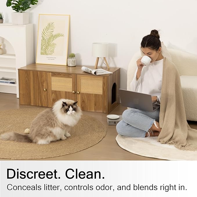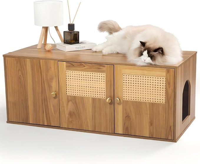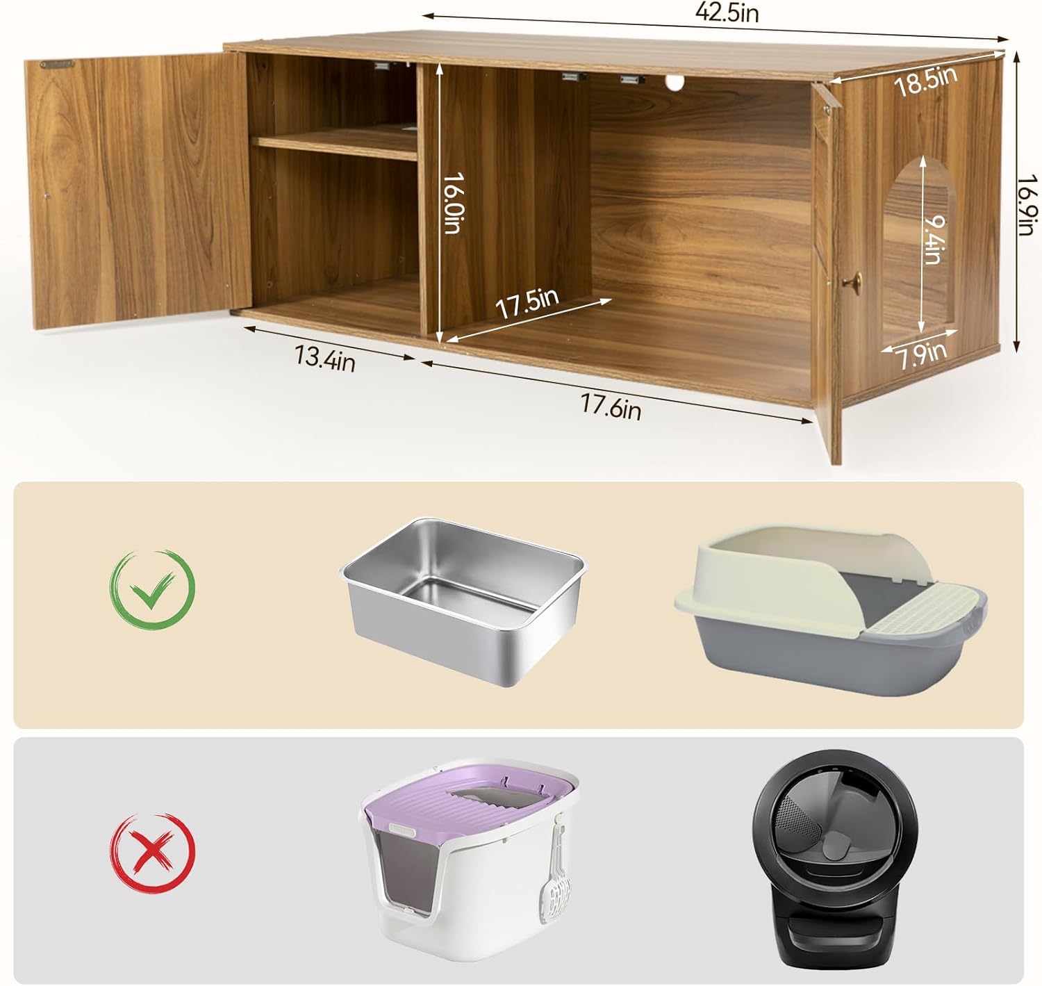 - Pet-Safe and Durable: Crafted from high-quality fiberboard that meets CARB and EPA standards, this cat box enclosure ensures pet safety, environmental friendliness, and long-lasting durability.